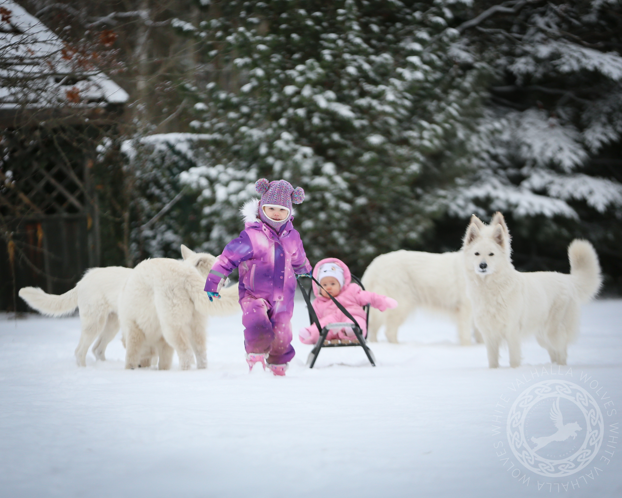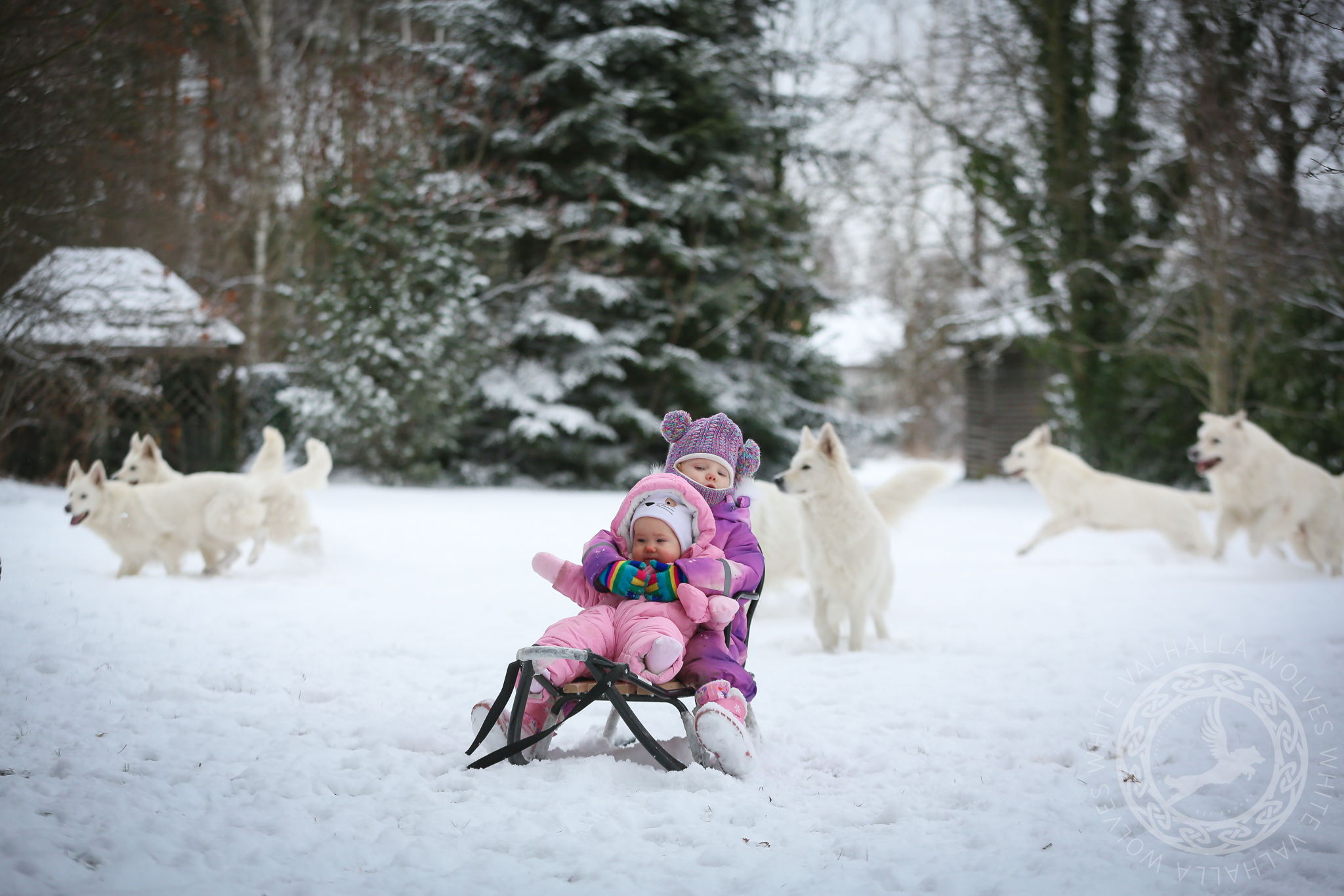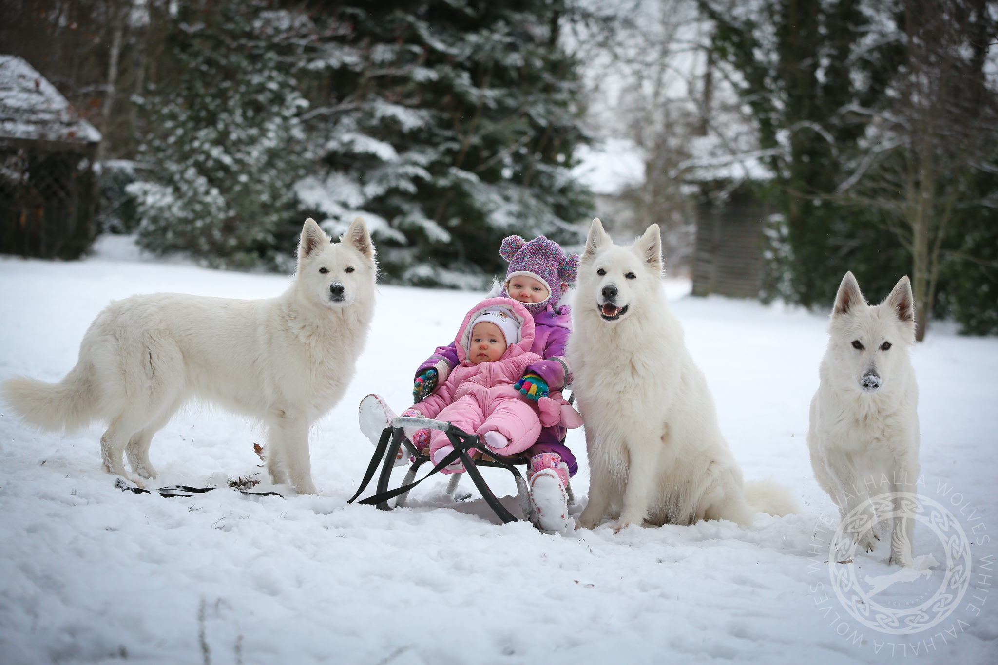 Dzieci, sanki, śnieg i pieski <3
