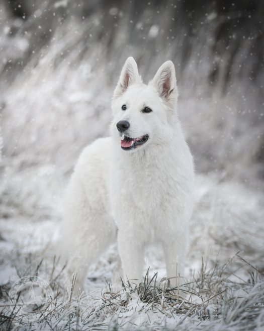 She is one of our most anatomically correct female dogs—with a beautiful, harmonious silhouette, excellent movement, a very attractive head, and a perfect coat. Her pigment, fur structure, and exceptionally light coloring have always been her greatest strengths.